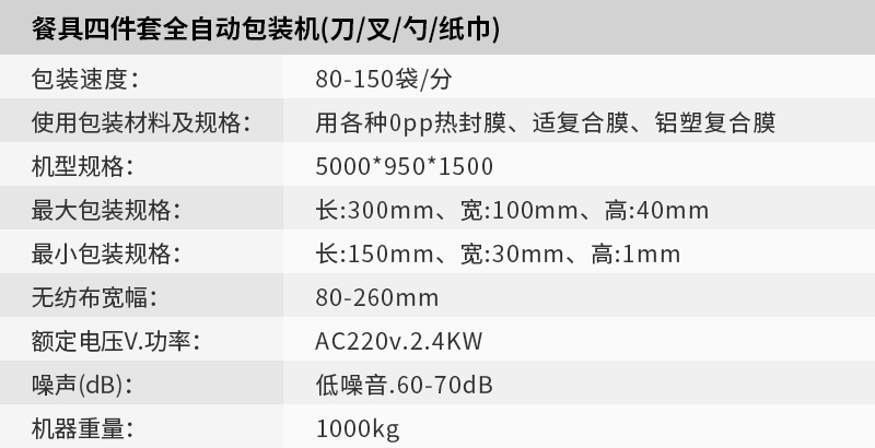 2、紙巾自動(dòng)折疊分切,刀自動(dòng)下料,勺子自動(dòng)下料,叉子自動(dòng)下料,紙巾自動(dòng)下料,自動(dòng)化程度高。