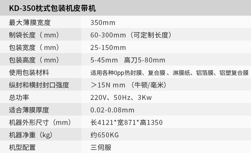 KD-350枕式包裝機皮帶機